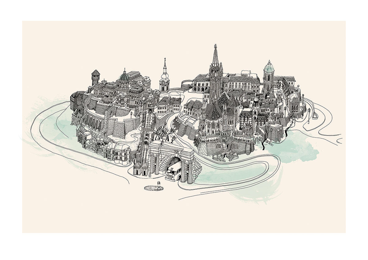 "Mixed media, I drew the original picture with technical pen (Rapidograph) on tracing paper, then I modified, colourized with Wacom Cintiq digital pen and tablet. Signed and titled by myself in pencil on the front of the print just underneath the image." Béla Magyar