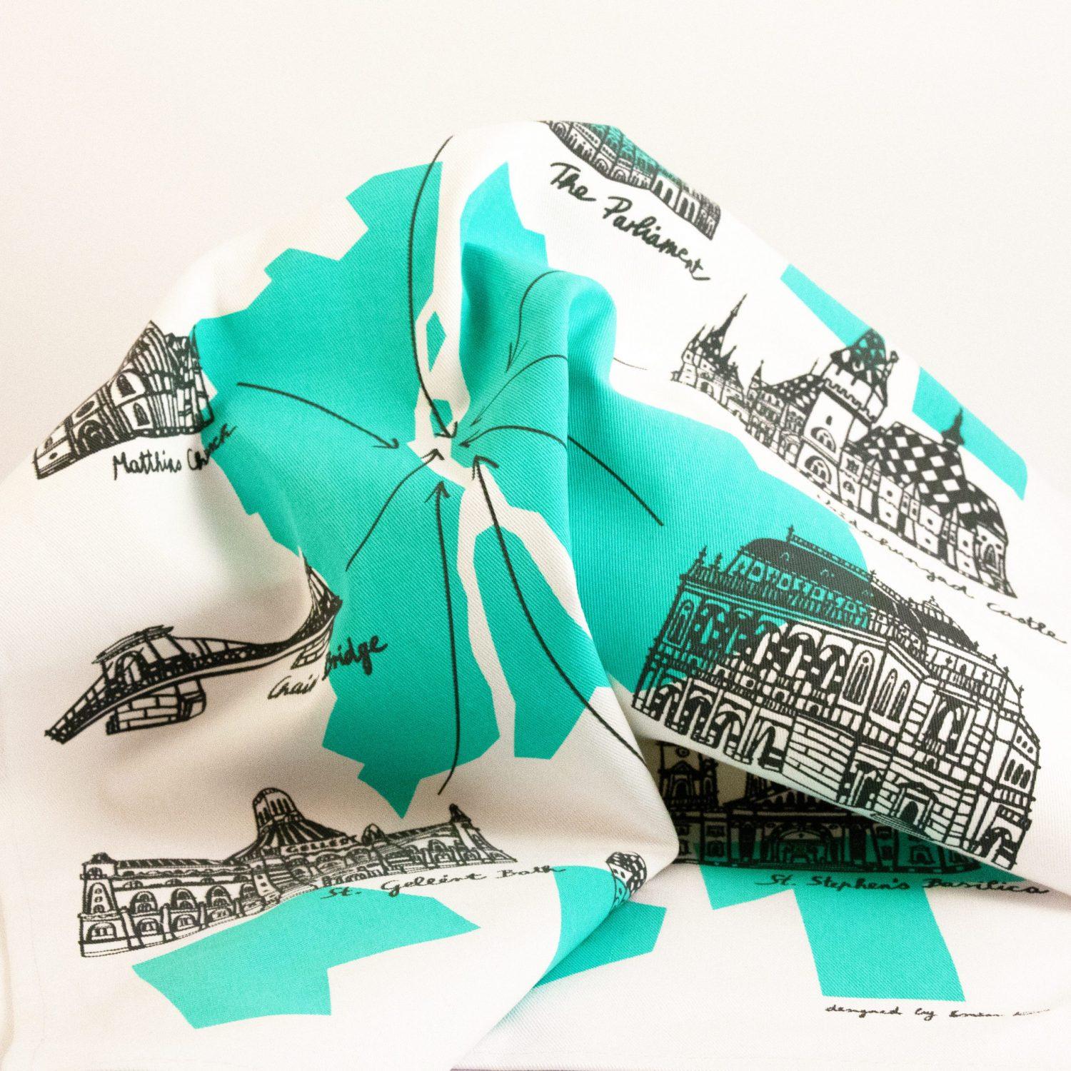 Close-woven, absorbent linen material, with printed Budapest graphics by Eszter Kiss.
