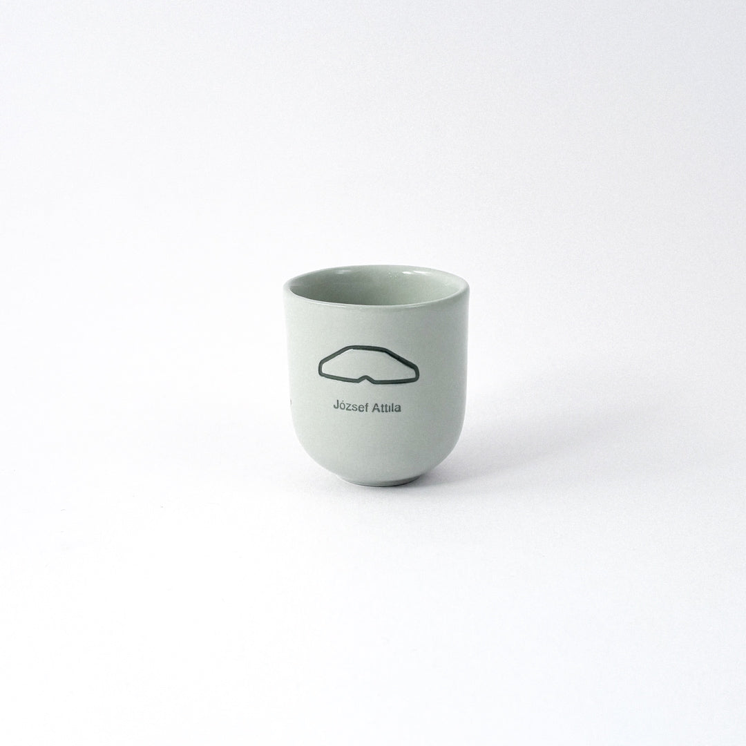 Ceramic shot glass decorated with famous Hungarian mustaches.